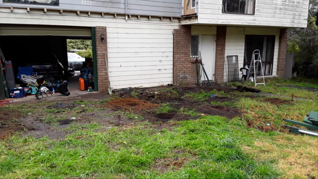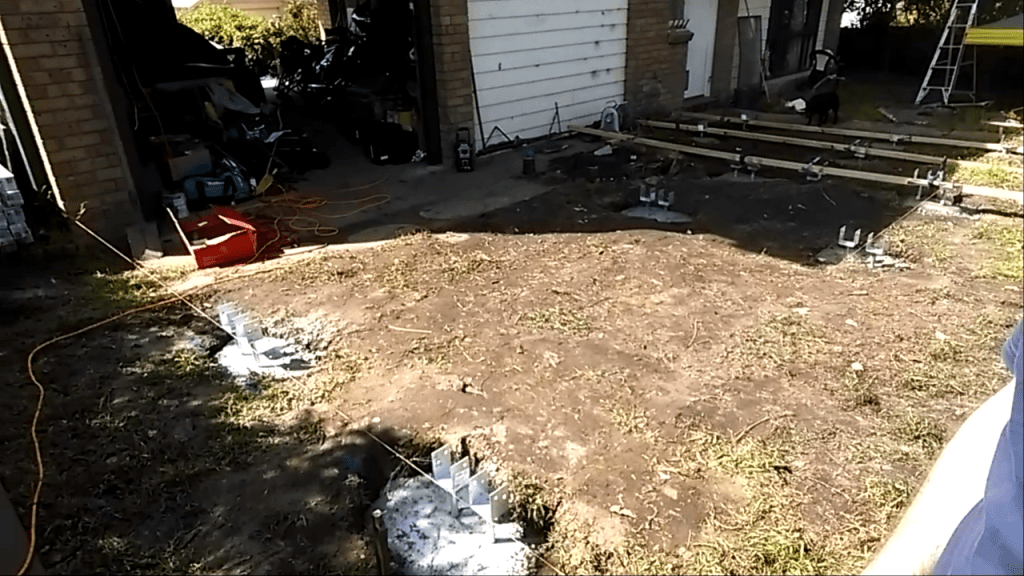The set-out of the footings took a long time. Due to the complexity of the structure, everything had to be millimetre perfect down in the ground for things to work out at head height later in the build. Many hours were spent measuring, checking, measuring again, and checking again before the concrete could be mixed and poured, one hole at a time. With so many footings it would have been quicker had I just ordered a concrete truck, but far less accurate and way too easy for things to go wrong, and fixing errors in set concrete mid way through a project is not fun at all.