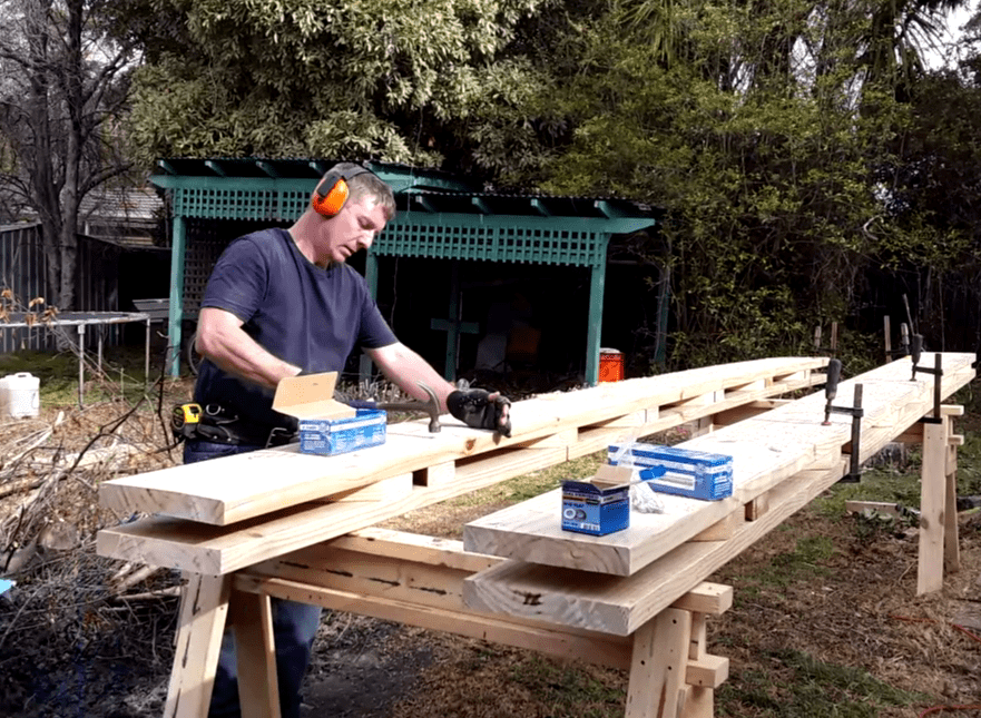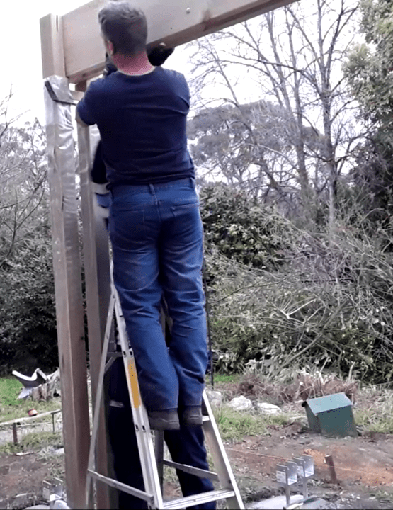 First up was all the posts, of which there were 18, and once they had been installed, 2 unique truss-style beams were fabricated on site to span the 3.8 metre opening for the rear garage, these 5.4 metre long behemoths were then hauled up a ladder to be nested between the double posts, where they were then bolted in place, allowing for the installation of the new joists.
